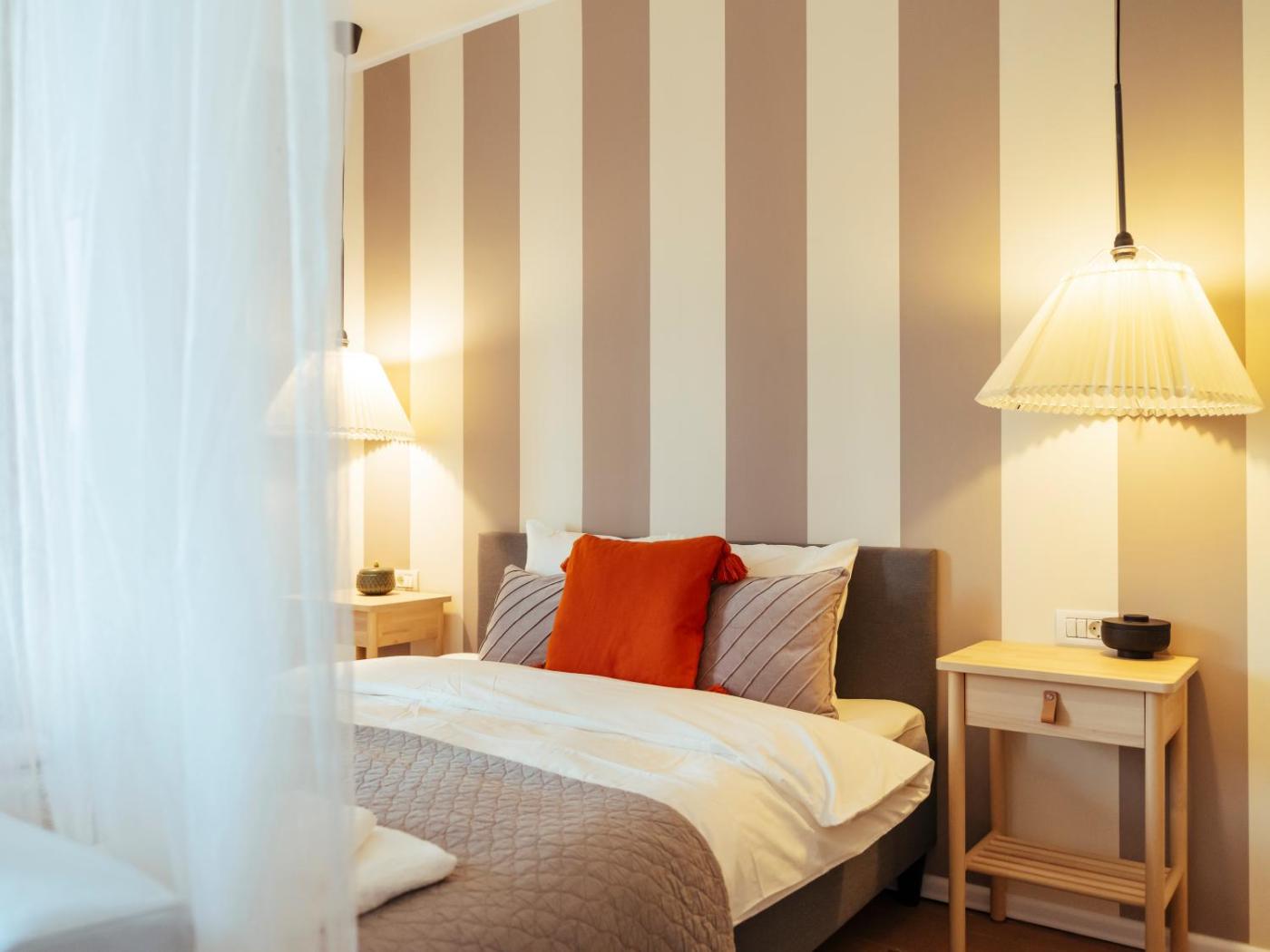 One-Bedroom Apartment. The kitchen features a stovetop, a refrigerator and kitchenware. This apartment is air-conditioned and has a seating area with a TV, a washing machine, a tea and coffee maker, a sofa, as well as a high chair for children. The unit has 2 beds.