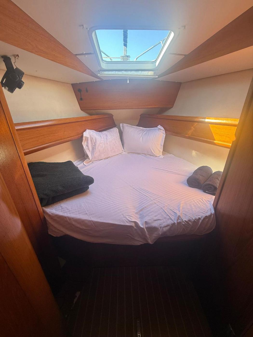 The boat includes 4 bedrooms, a living room, and 2 bathrooms with a shower. Towels and bed linen are available in the boat.