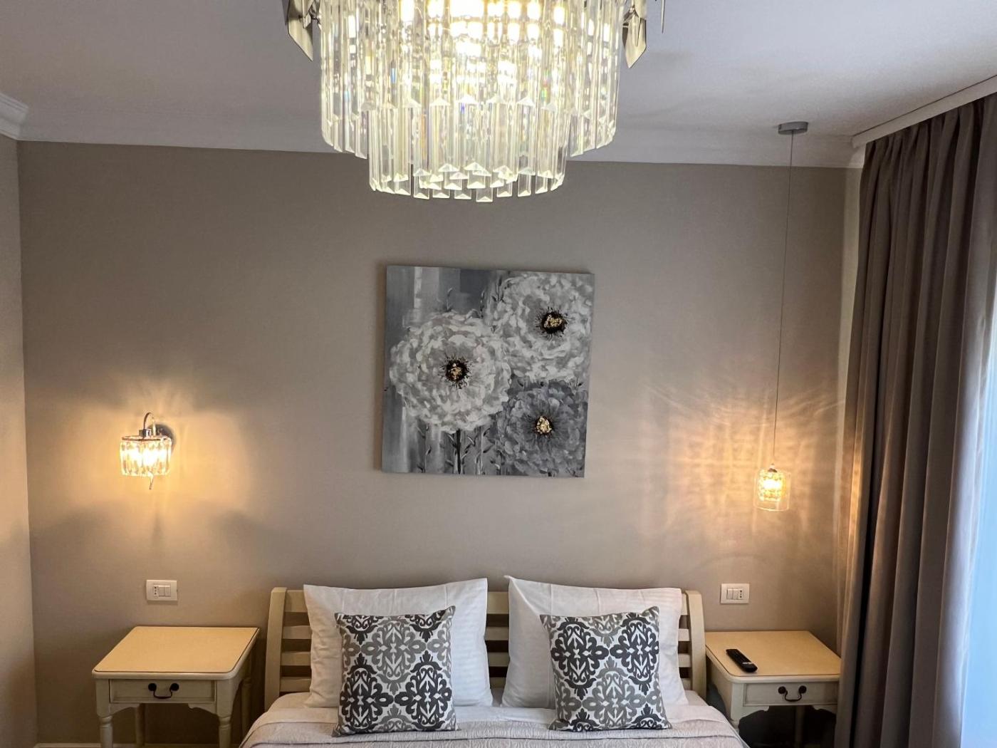 Deluxe Villa. Featuring a private entrance, this air-conditioned villa is comprised of 1 living room, 6 separate bedrooms and 4 bathrooms with a shower and a hairdryer. The villas kitchenette is available for cooking and storing food. Boasting a terrace with a quiet street view, this villa also offers soundproof walls and a flat-screen TV. The unit offers 6 beds. ;
